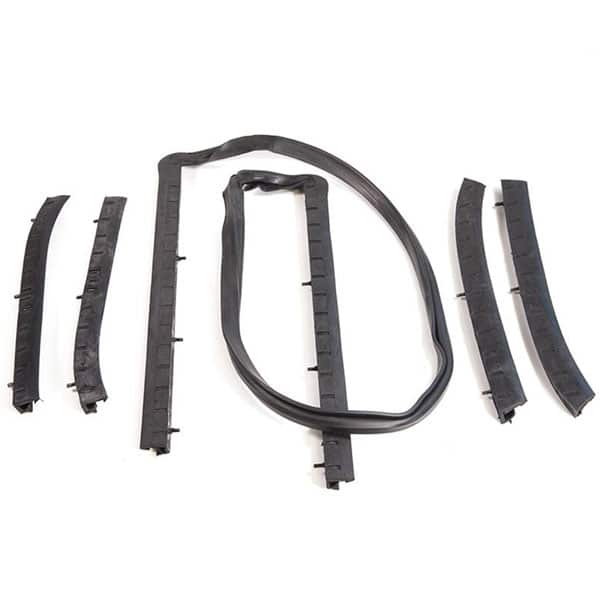 This handy 5-piece set includes top header, center rail and side rail weatherstrips, for a complete replacement of aged rubber.
